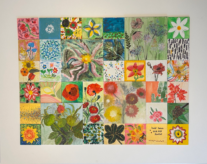 Ich durfte die rund 30 Gäste aufmuntern an einem Bild mit zu gestalten, das der Gastgeberin geschenkt wird.